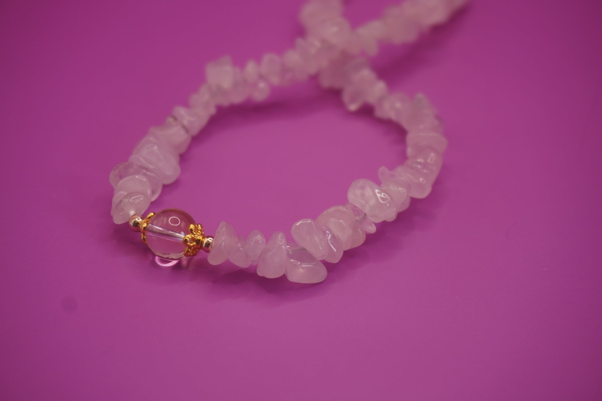 Handykette Rosenquarz Gold