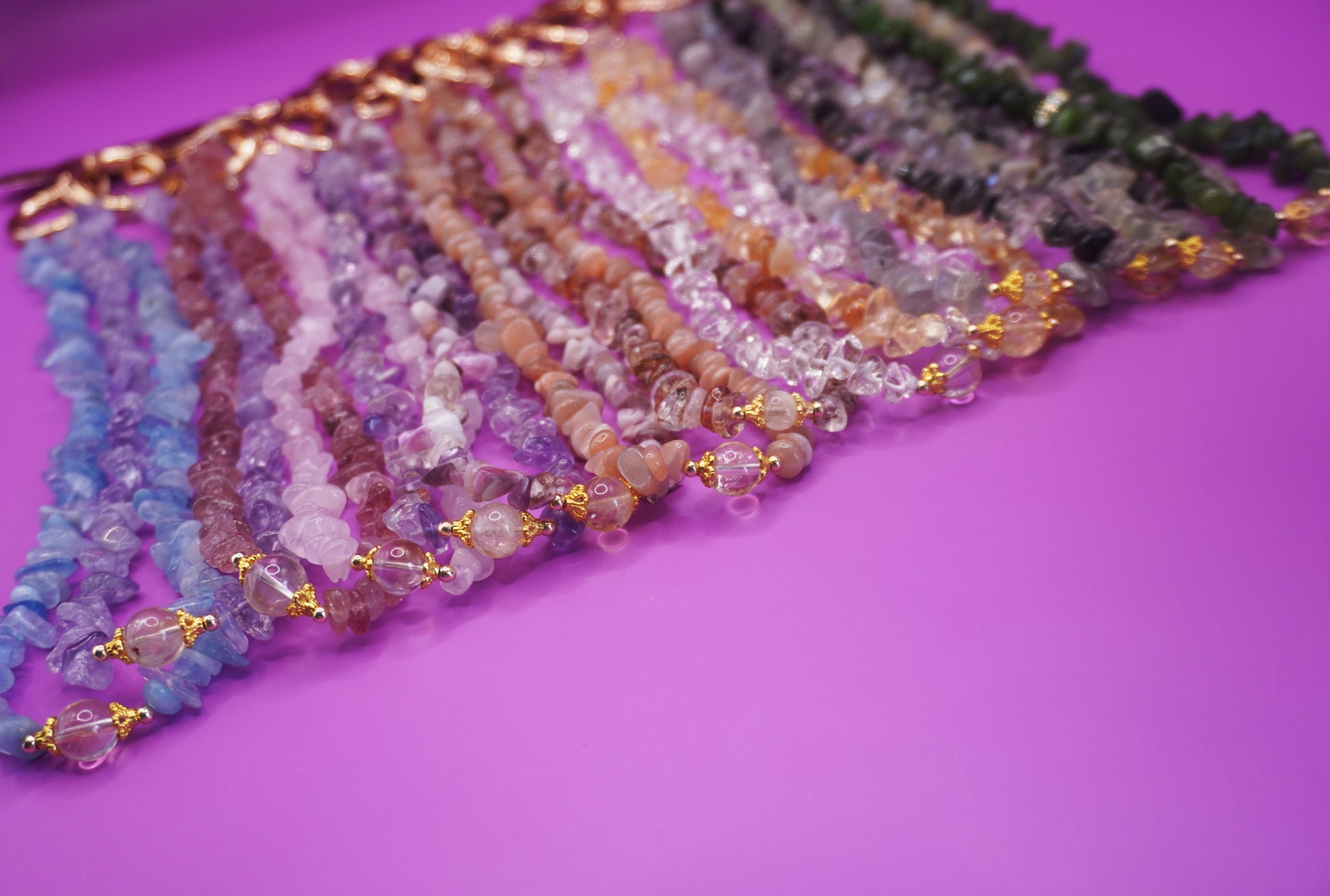 · Manche Edelsteine (z. B. Opale, Türkise) sind empfindlich gegenüber direkter Sonneneinstrahlung, Wasser oder Hitze. Direktes Sonnenlicht kann die Farbe und Struktur von Steinen (z. B. Amethyst, Fluorit) verändern. Bitte vor intensiver UV-Bestrahlung schützen.