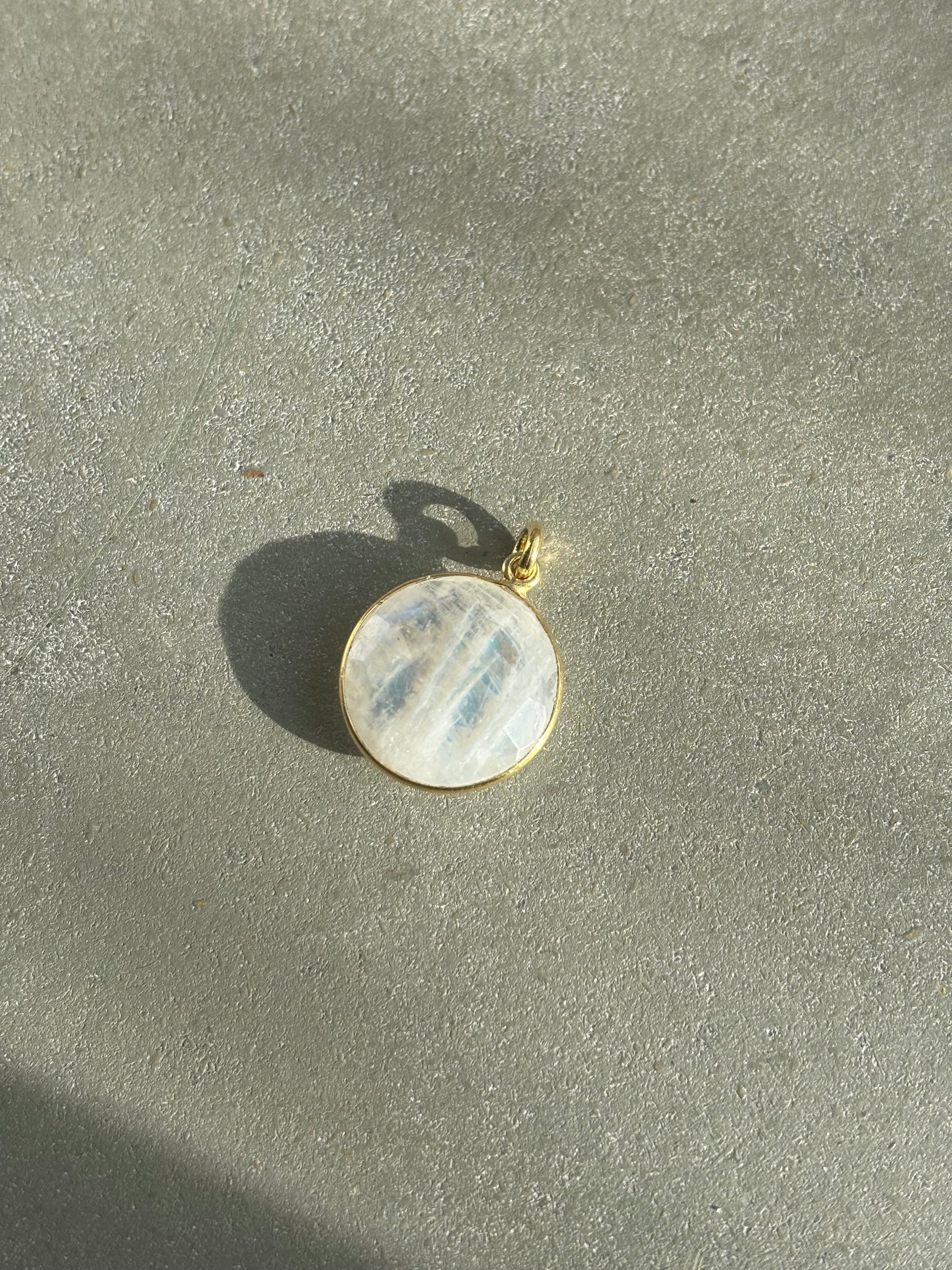 Regenbogenmondstein (weißer Labradorit) Anhänger Gold